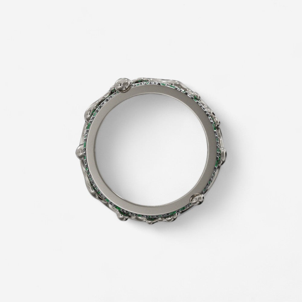The sparkling silver design gently hugs your finger, while finely set gemstones add a touch of mystery and light. An organic and timeless promise.