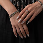 유기적인 흐름과 액체 수은의 우아한 움직임에 대한 매혹. 순은이 유려한 형태로 흘러내리며, 감각적이고 역동적인 작품을 만들어냅니다.