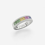18K 화이트 골드 밴드 반지, 사파이어와 다이아몬드