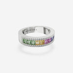 EDEN - SAPFIRA gold Ring  Sapphire and diamond 1/2 band ring in 18K white gold.Sapphire is a stone of wisdom and royalty, of prophecy and divine favor. It was a symbol of power and strength, but also of kindness and wisdom.