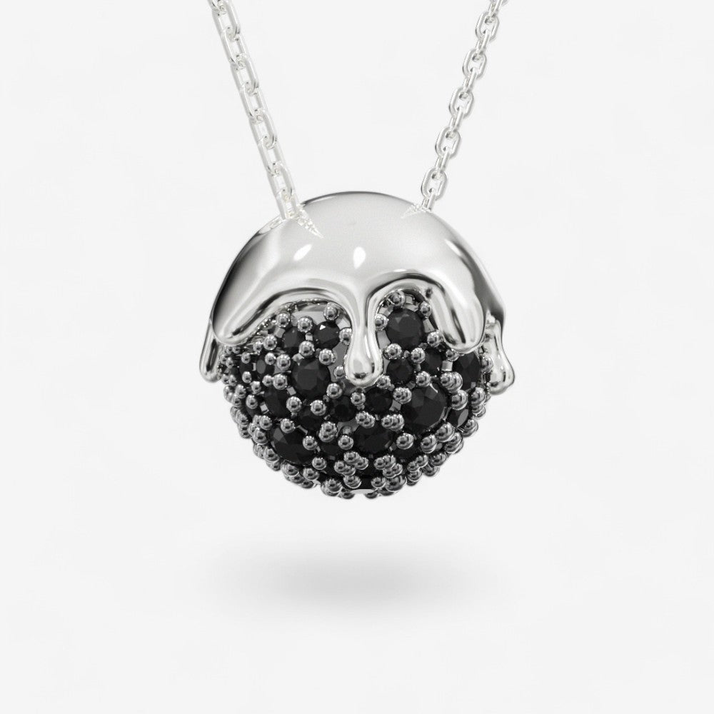 오브 펜던트는 액체 금속의 우아함을 구현한 제품으로, 반짝이는 돌로 장식된 구체 위에 녹은 은을 연상시키는 디자인이 얹혀 있습니다. 금속의 섬세한 곡선은 액체 수은의 유기적인 움직임을 포착한 듯, 유동성과 빛남 사이의 완벽한 균형을 제공합니다.
