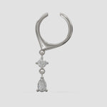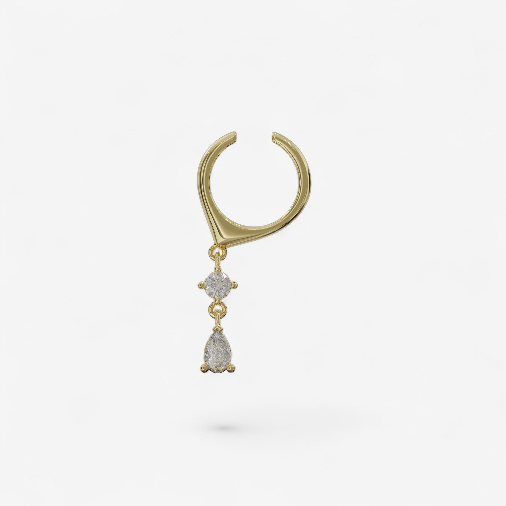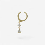 18캐럿 골드(옐로우, 화이트, 로즈 골드) 싱글 이어링에 다이아몬드가 세팅되어 있습니다. 강인함, 세련됨, 그리고 광채가 조화를 이루는 조각품과 같은 작품입니다.