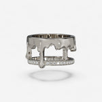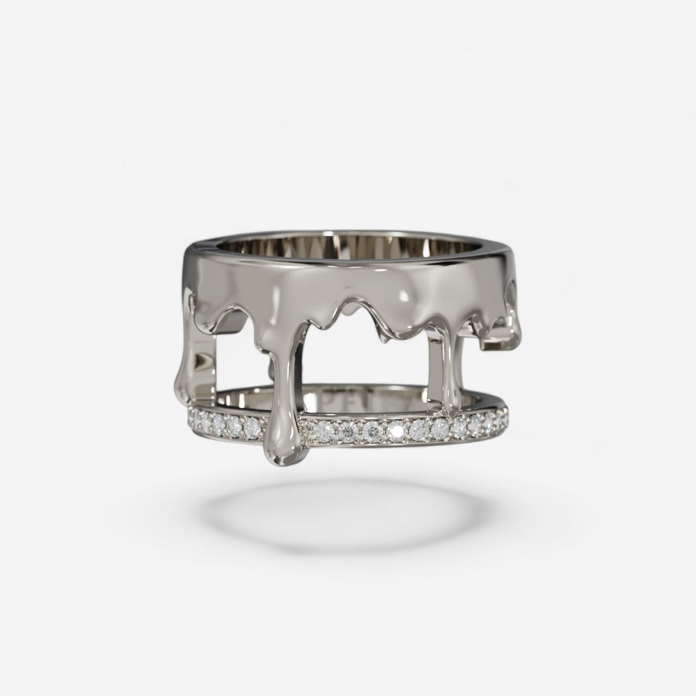 La bague FEVER capture l'essence de l'argent liquide qui tombe en cascade, créant un attrait visuel unique et enchanteur. Le travail du métal argenté tourbillonne et se courbe délicatement, imitant le flux organique du mercure liquide, tandis que les pierres précieuses ajoutent une touche de couleur vibrante et d'éclat.