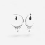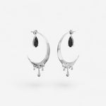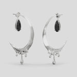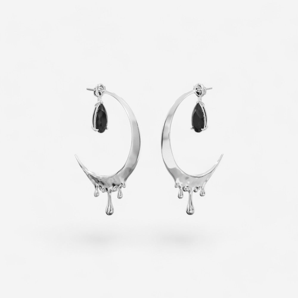Nos boucles d'oreilles Moon capturent l'essence de l'argent liquide qui tombe en cascade, créant un attrait visuel unique et enchanteur. Le métal argenté tourbillonne et se courbe délicatement, imitant l'écoulement organique du mercure liquide, tandis que les pierres précieuses ajoutent une touche de couleur vibrante et d'éclat.